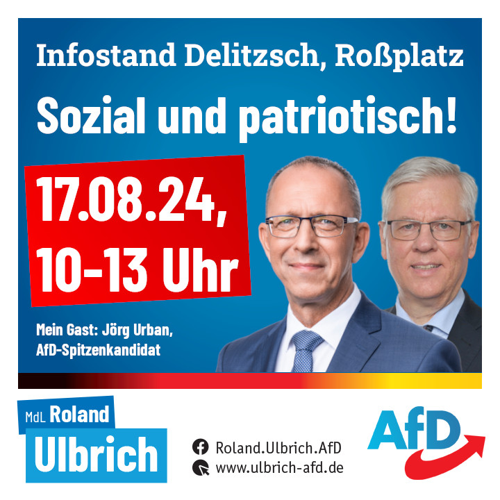 Am 17. August 2024, 10-13 Uhr auf dem Roßplatz in Delitzsch.